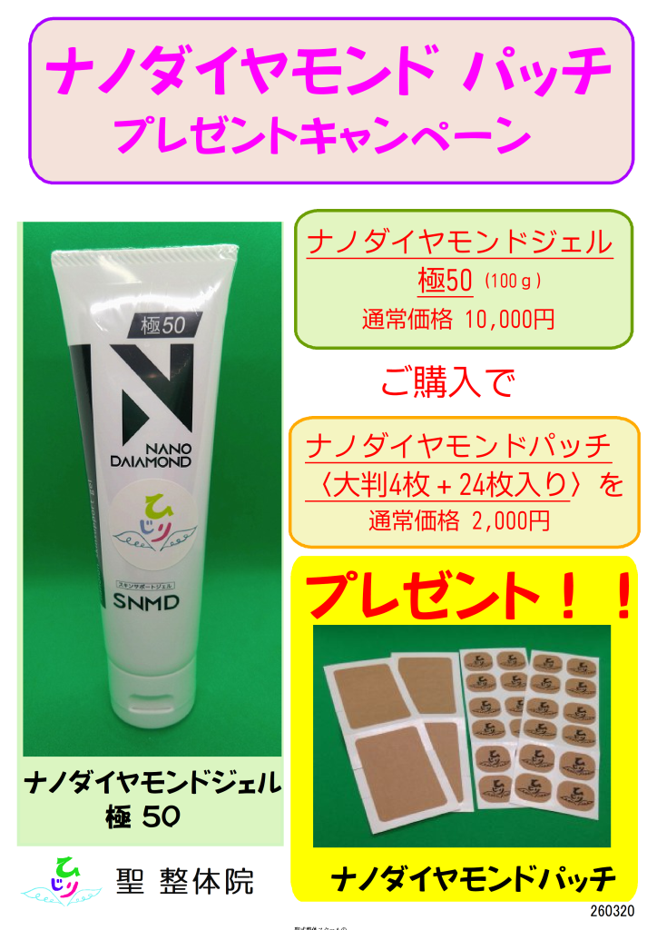 「ナノダイヤモンドジェル極50」をご購入で「ナノダイヤモンドパッチ」が付いてくる、キャンペーンは3月末までとなっています!